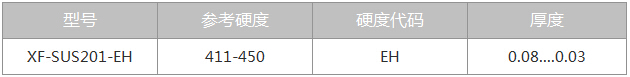 301超薄、超硬特種不銹鋼帶性能一覽表